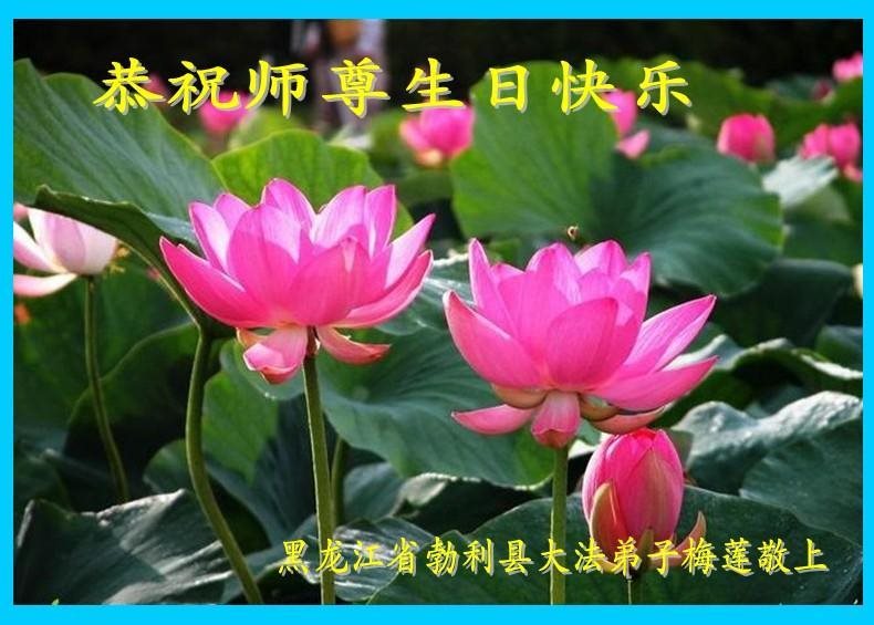 恭祝5.13世界法轮大法日!普天同庆! 黑龙江省七台河市勃利县大法弟子梅莲恭祝师父生日快乐!