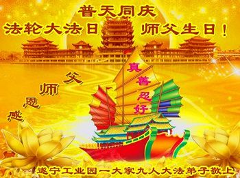 【明慧网二零一七年五月八日】 四川遂宁工业园区一大家九人大法弟子恭祝慈悲伟大的师父生日快乐!同庆法轮大法日!