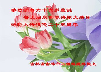 恭祝世界法轮大法日!恭祝法轮大法洪传二十五周年! 吉林省吉林市三姐妹恭贺世界法轮大法日!