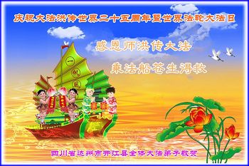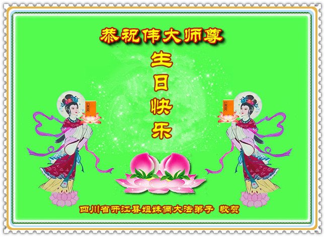 四川省达州市开江县全体大法弟子庆祝大法洪传世界二十五周年暨世界法轮大法日! 四川绵阳全体大法弟子及家人恭祝师尊生日快乐!