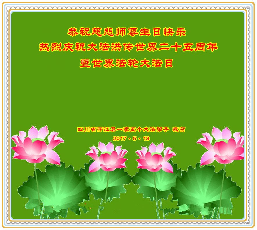 【明慧网二零一七年五月八日】 四川开江大法弟子恭祝师尊传法25周年暨18届世界法轮大法日!