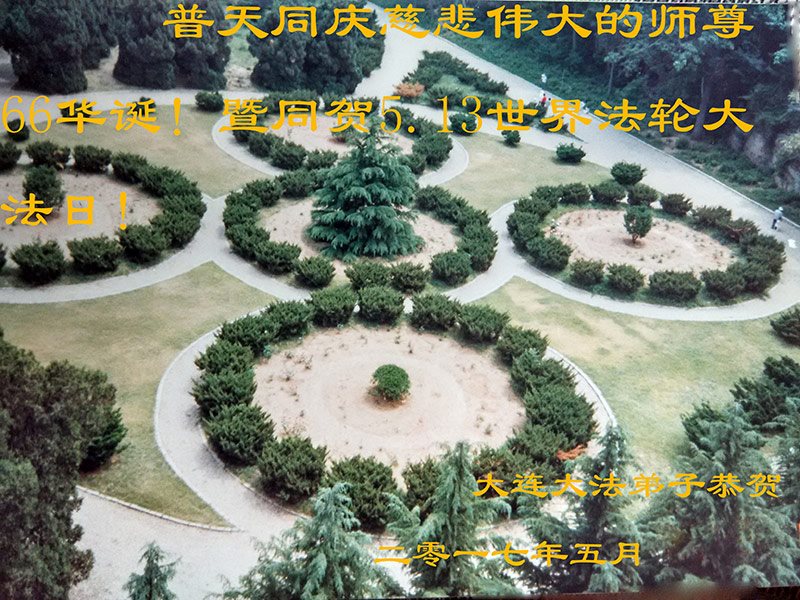 【明慧网二零一七年五月八日】 辽宁省大连市普兰店全体大法弟子恭祝伟大的师尊生日快乐!普天同庆五·一三世界法轮大法日!