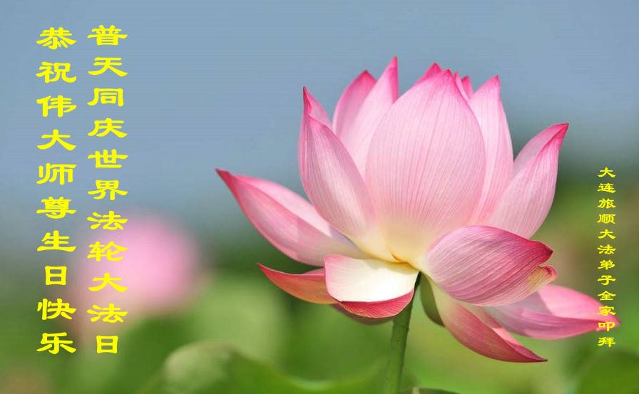 辽宁省大连一大法弟子及家人恭祝慈悲伟大的师尊生日快乐!普天同庆世界法轮大法日!