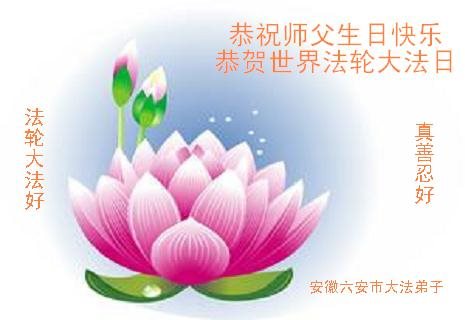 今后一定精進随师父回家! 安徽六安市大法弟子恭祝师父生日快乐!恭贺世界法轮大法日!