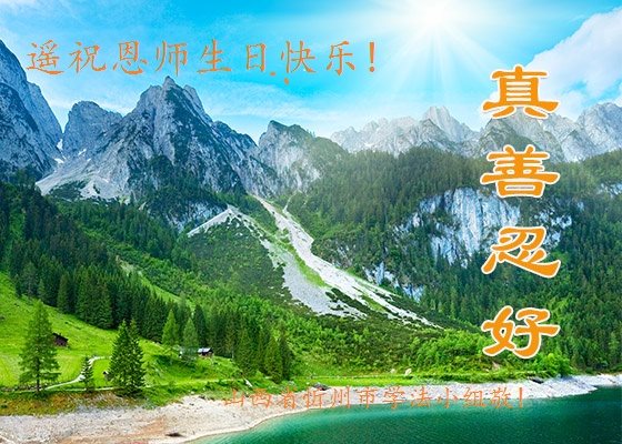 山西平定一学法小组大法弟子恭祝慈悲伟大的师尊生日快乐!