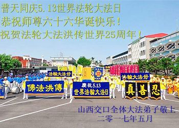 山西交口全体大法弟子恭祝师尊华诞快乐!庆祝世界法轮大法日!