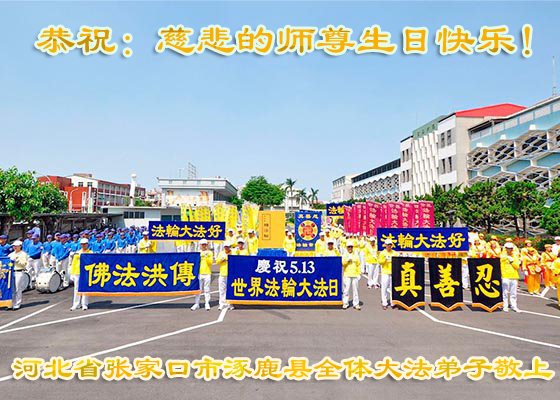 河北省张家口市涿鹿县全体大法弟子恭祝师尊生日快乐!