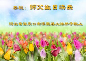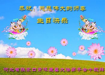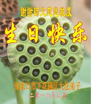 祝师父生日快乐!谢谢师父慈悲苦度,法轮大法好,真善忍好。 河北省张家口市下花园区大法弟子同修夫妇恭祝师父生日快乐!