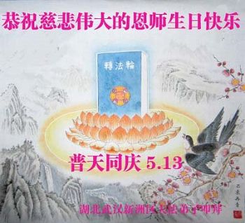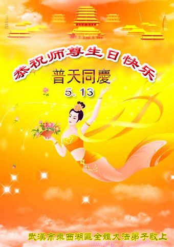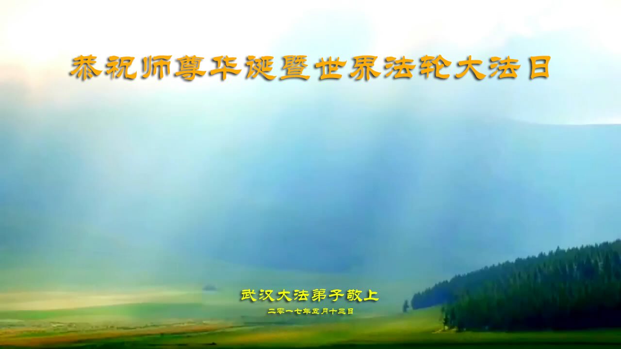 【明慧网二零一七年五月八日】 湖北省武汉市武昌区一学法小组全体大法弟子恭祝师尊生日快乐!祝贺世界法轮大法日!