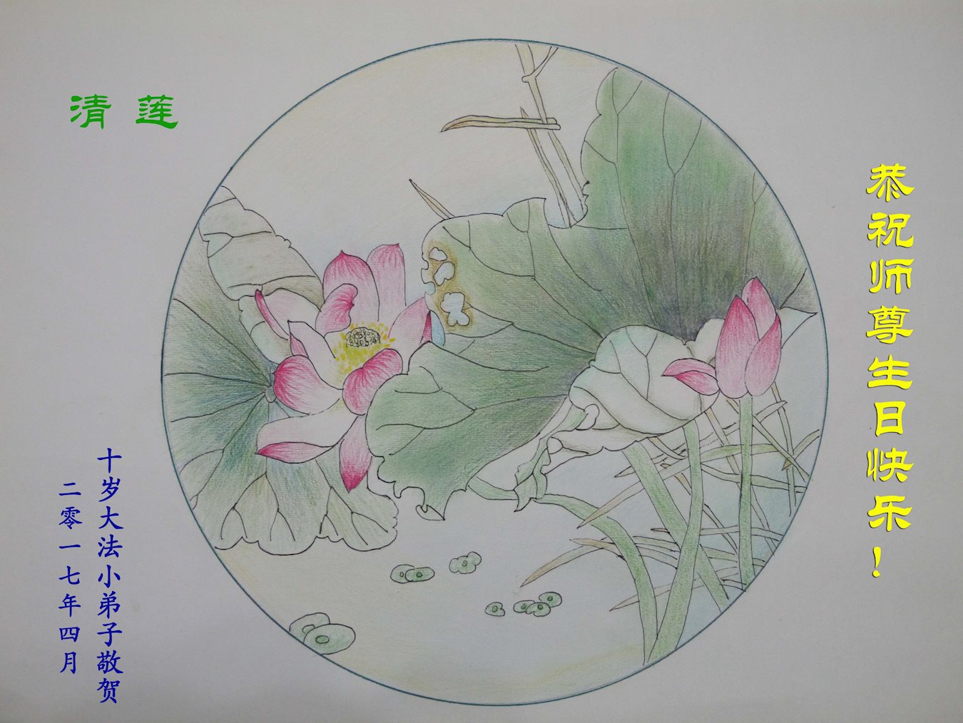 武汉大法小弟子手绘彩铅画《清莲》恭祝师尊生日快乐! 湖北省直辖行政单位潜江市大法弟子恭祝师尊生日快乐!恭贺世界法轮大法日!
