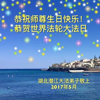 感谢师尊的慈悲苦度,祝师尊生日快乐! 湖北省直辖行政单位潜江市大法弟子恭祝师尊生日快乐!恭祝世界法轮大法日!