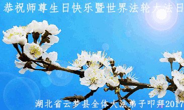 在今后的修炼路上做到实修,让师父少操心,圆满随师还。 湖北省孝感市云梦县全体大法弟子恭祝师尊生日快乐!暨世界法轮大法日!