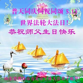 山东潍坊临朐县一学法小组全体大法弟子恭祝师尊生日快乐!庆祝第十八届世界法轮大法日!