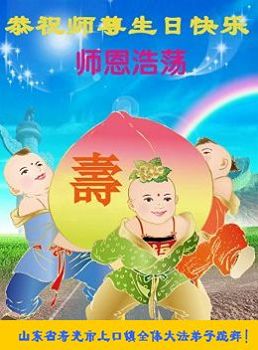 山东潍坊高密大法弟子恭祝慈悲伟大的师尊生日快乐!
