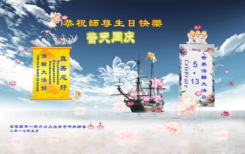 河北石家庄市大法弟子普天同庆5·13世界法轮大法日!恭祝师尊生日快乐!