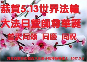 河北石家庄市长安区一学法小组大法弟子恭贺法轮大法日!