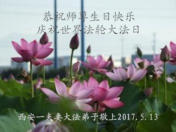 恭贺法轮大法日!恭祝师尊生日快乐! 2017.5.13 陕西西安一大法弟子恭祝师尊生日快乐!