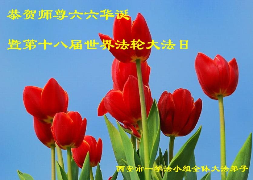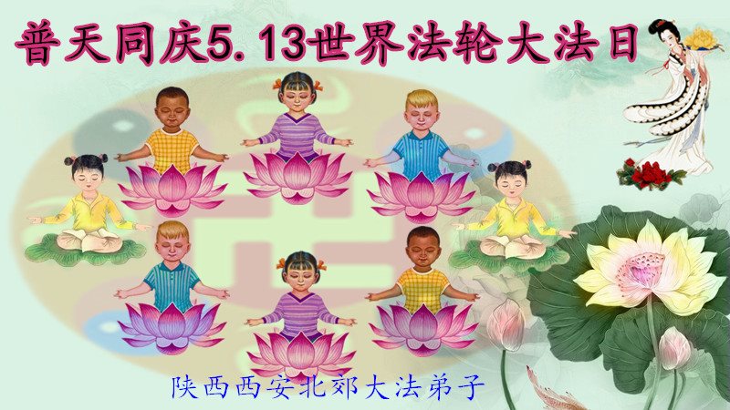 西安市城北一学法小组大法弟子庆祝 大法日祝师父生日快乐! 普天同祝同庆同颂世界法轮大法日 恭祝师尊生日快乐! 西安市城北一学法小组大法弟子叩首 陕西省西安一大法弟子庆祝世界法轮大法日祝师父生日快乐!