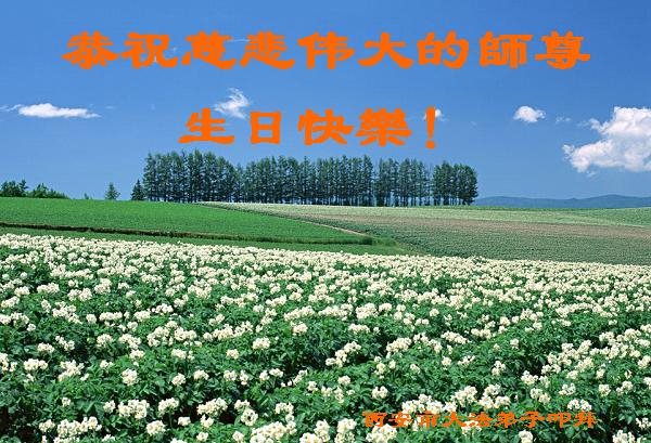 师尊, 恭祝您生日快乐! 陕西西安市北郊一学法小组大法弟子叩拜 陕西省西安一大法弟子恭祝世界法轮大法日暨师尊华诞!