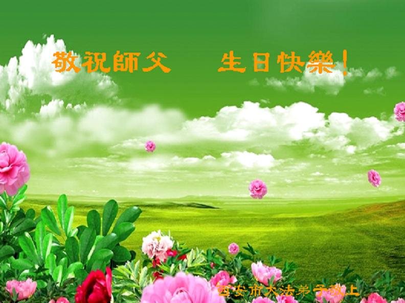 陕西西安大法弟子敬上 陕西西安大法弟子祝师父生日快乐!