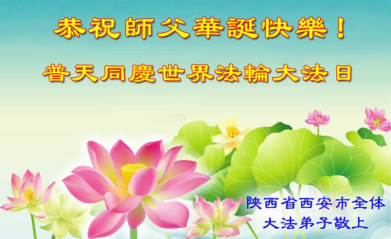 恭祝世界法轮大法日暨师尊华诞! 陕西西安大法弟子敬上 陕西西安大法弟子普天同庆世界法轮大法日!