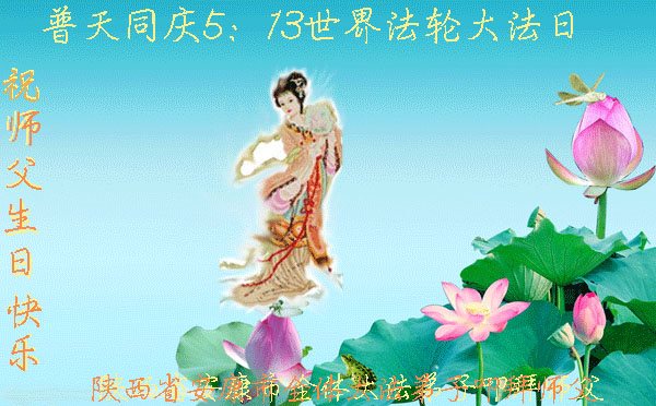 陕西省铜川市大法弟子庆贺世界法轮大法日!恭祝师尊生日快乐! 陕西省安康市全体大法弟子恭祝师尊节日愉快!