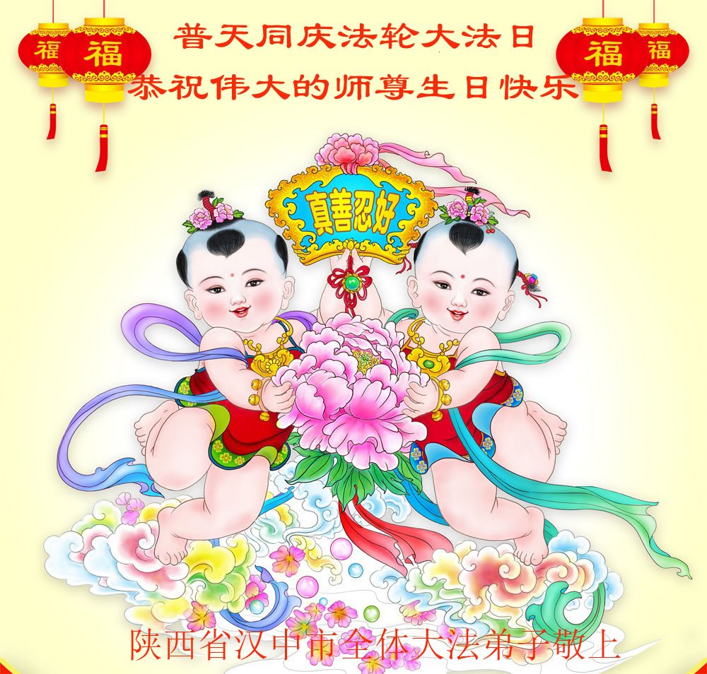 恭祝世界法轮大法日暨师尊华诞 法轮大法好 真善忍好 陕西省大法弟子敬上 陕西省大法弟子祝师父生日快乐!