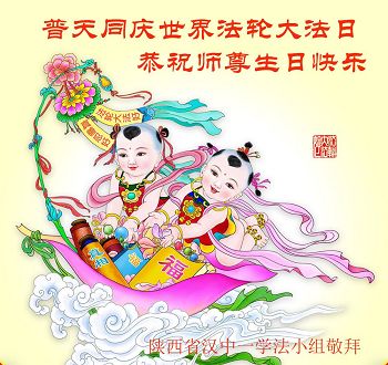 陕西省汉中一学法小组祝贺世界法轮大法日、恭祝伟大的师尊生日快乐!