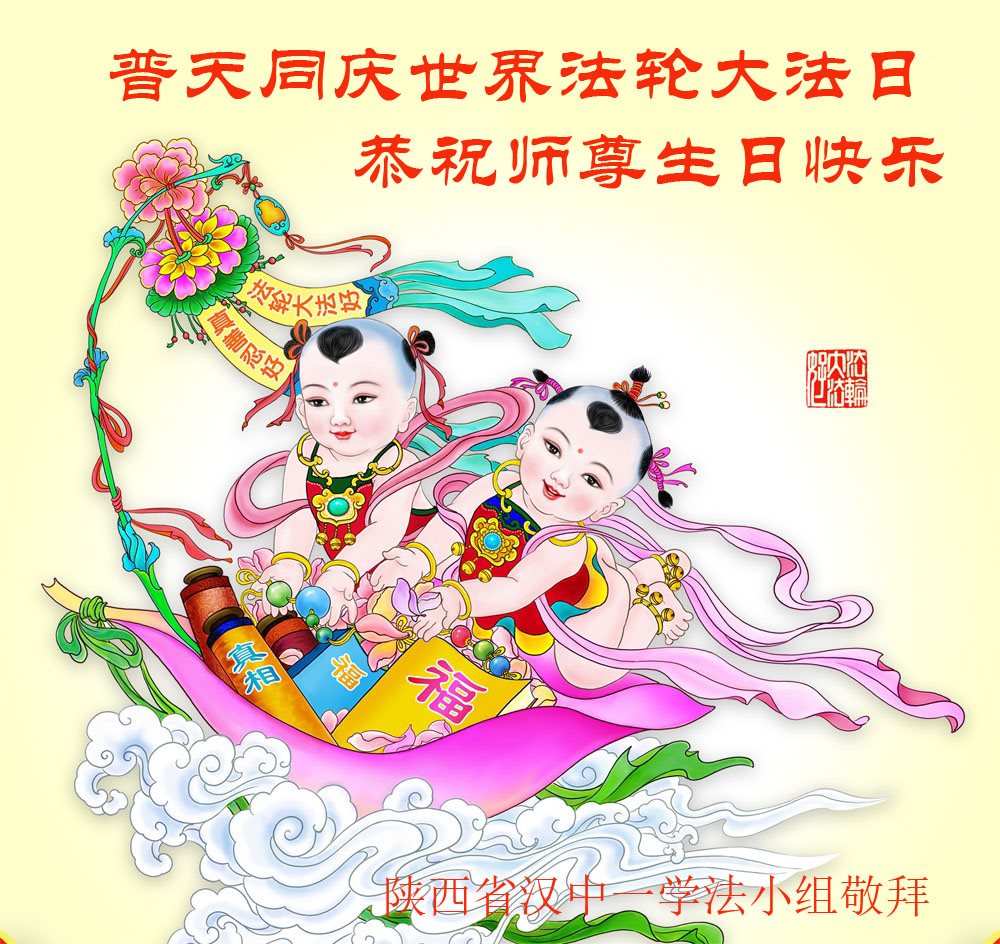 陕西省汉中市勉县大法弟子一家恭贺“5.13”世界法轮大法日,恭祝慈悲伟大的师尊生日快乐!