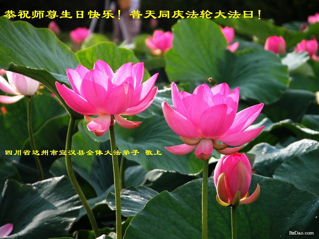 尊敬的、慈悲伟大的师尊好!在此我们一家三口大法弟子普天同庆“5.13”世界法轮大法日!请师父放心,我们一家三口大法弟子一定会修好自己的心性,提高上来,放下各种执着心。多救人,做好师父要求的三件事。我们一定会跟上师父的正法進程,走好正法路,完成我们的史前洪誓大愿,兑现我们的史前誓约。弟子无法用语言来表达师父的救度之恩,只有精進,更加精進,勇猛精進。让师父少一份操劳,多一份欣慰。我们只有坚信师父,坚信大法,才能助师正法走到最后,跟随师父圆满随师还。我们一家三口大法弟子跪拜师尊!合十!我们一家三口大法弟子再次祝师尊生日快乐! 四川省达州市宣汉县全体大法弟子恭祝师尊生日快乐!同庆法轮大法日!