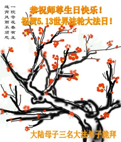 大陆母子三名大法弟子恭祝师尊生日快乐!同祝世界法轮大法日!