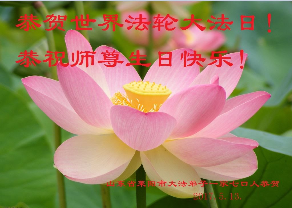 山东省烟台市莱阳市大法弟子一家七口人恭祝慈悲伟大的师尊生日快乐!恭贺“5.13”世界法轮大法日!