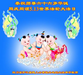四川省达州市开江县随儿女常驻外地的大法弟子恭祝师尊六十六岁华诞!同庆同颂5.13世界法轮大法日!