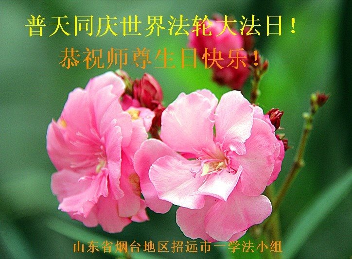 立足法为本 风雨见真性 锤炼志逾坚 兑约随师归 山东省烟台地区招远市一学法小组大法弟子恭祝师尊生日快乐!普天同庆世界法轮大法日!