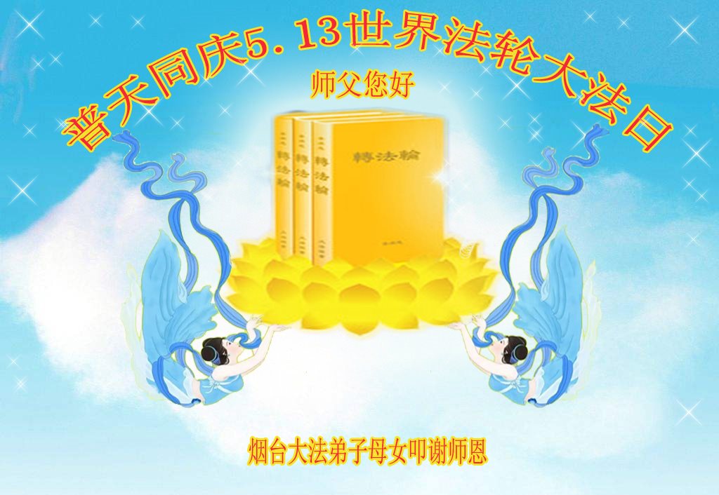 山东烟台大法弟子母女庆贺513世界法轮大法日!