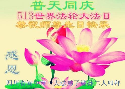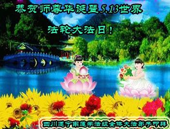【明慧网二零一七年五月八日】 四川遂宁大法弟子恭祝师尊生日快乐!庆祝5.13法轮大法日!