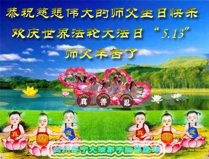 四川省达州达川区全体大法弟子恭祝慈悲伟大的师尊生日快乐!暨欢庆世界法轮大法日二十五周年纪念!