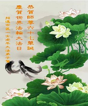 我们谨记师父教诲,严格做好师父安排的三件事,正念正行,跟上师父正法進程,不辜负师父的慈悲救度! 大陆大法弟子法莲恭祝师尊生日快乐!庆祝世界法轮大法日!跪谢师尊!