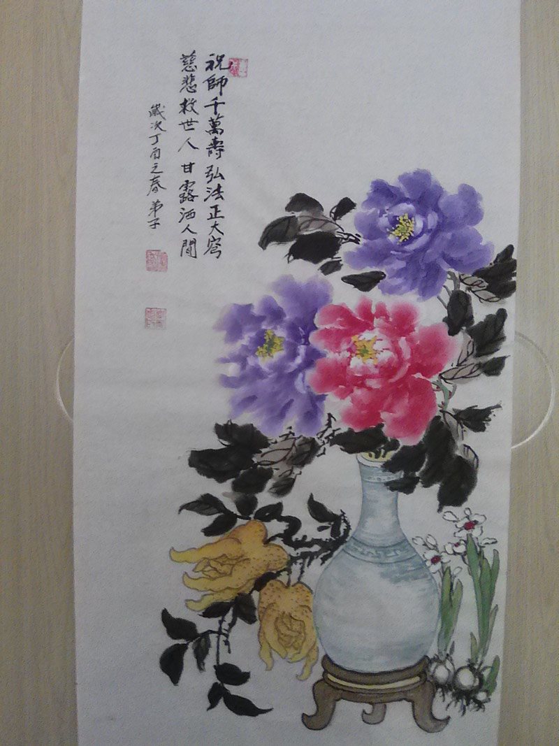 我和母亲、妻子祝慈悲伟大的师父生日快乐!谢谢师父!