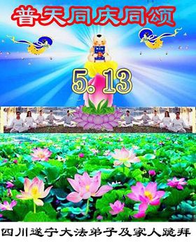 四川遂宁大法弟子及家人跪拜恭祝师尊生日快乐!普天同庆同颂同贺世界法轮大法日!