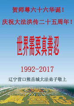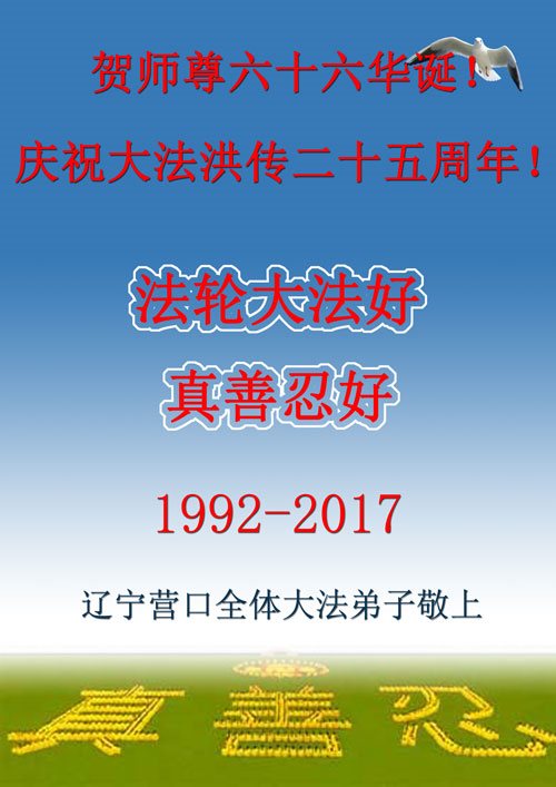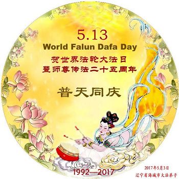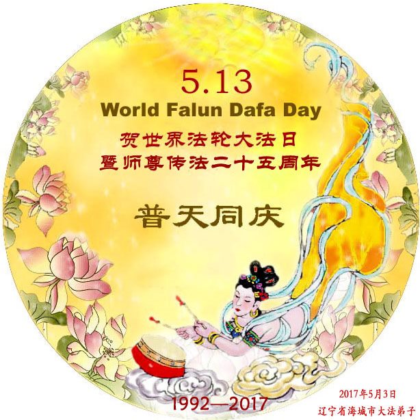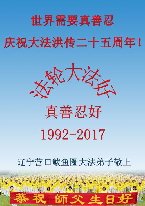 辽宁省鞍山市海城市大法弟子恭祝师尊生日快乐!贺世界法轮大法日暨师尊传法二十五周年!
