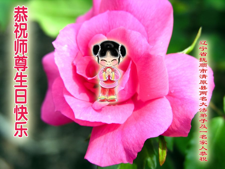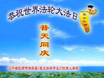 恭祝师尊生日快乐!师父为世人、为弟子们承受的太多太多,愿师父少操劳,愿师父常欢笑!近日弟子做的不好,又让师父为弟子多操心了。弟子知道错了,今日起一定戒除网瘾,永不再犯,精進起来,做好三件事,让师父少操心,惟愿师尊笑! 辽宁省抚顺市清原县4名大法弟子及40位亲人恭祝世界法轮大法日!