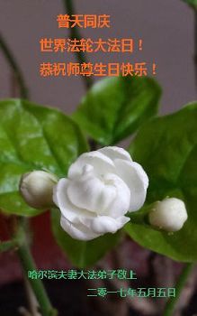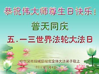 黑龙江省哈尔滨市两大法弟子恭贺世界法轮大法日暨师尊华诞!