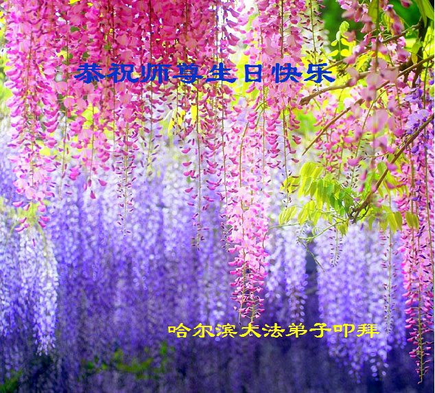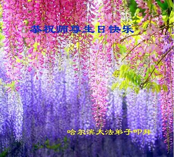 黑龙江省哈尔滨一中年大法弟子恭祝师父生日快乐!