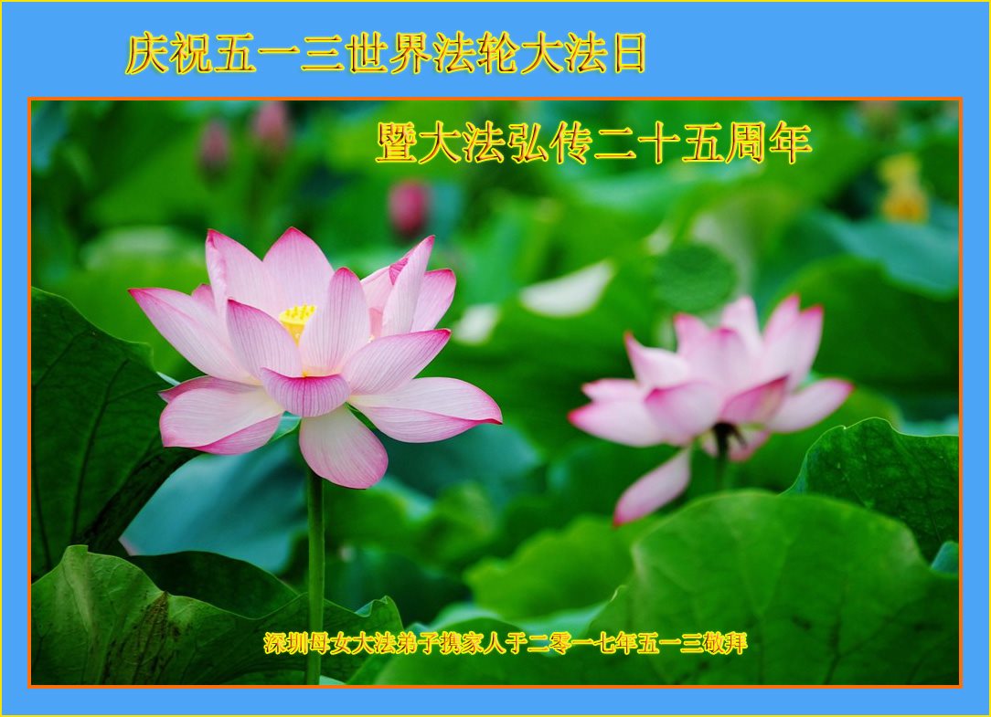 广东省深圳母女大法弟子庆祝世界法轮大法日及大法洪传世界二十五周年!
