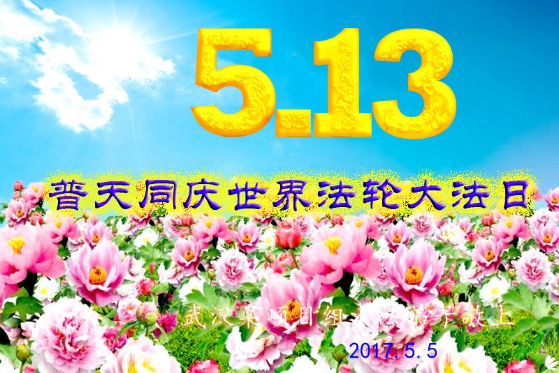 湖北省武汉大法弟子恭祝慈悲伟大的师尊生日快乐!普天同庆世界法轮大法日25周年!法轮大法好!真善忍好!