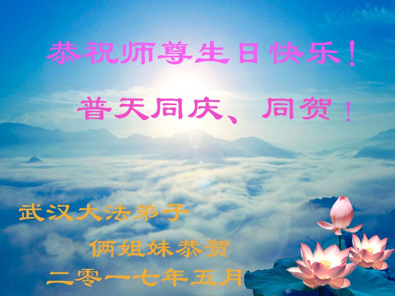 湖北省武汉大法弟子俩姐妹恭祝慈悲伟大的师尊华诞生日快乐!
