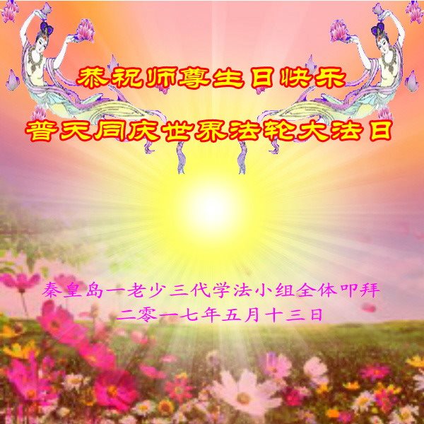 恭祝师尊生日快乐!普天同庆世界法轮大法日! 秦皇岛一老少三代学法小组全体叩拜 二零一七年五月十三日 河北秦皇岛全体大法弟子同祝同贺513世界法轮大法日!