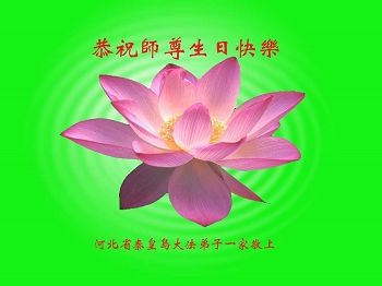 河北省秦皇岛一家三口大法弟子恭祝慈悲伟大的师父生日快乐!