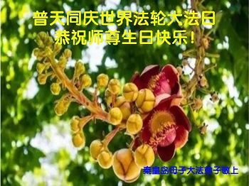 婆罗花 神奇花 圣王来 传大法 绽金莲 放光华 福音传 遍天下 河北省秦皇岛市一商店所有大法弟子恭祝师父生日快乐!欢庆世界法轮大法日!